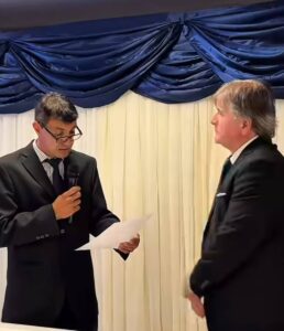 El honor estuvo a cargo del Diputado Edgar Benítez, quien además tuvo el gesto de donar dicha insignia institucional.