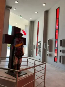El santuario central, que será el eje del predio, tendrá una superficie de 435 m² y contará con un atrio y un oratorio. Pero la obra pública va mucho más allá de la estructura religiosa: se está construyendo un complejo completo que contará con locales comerciales y gastronómicos, Áreas de camping, alojamiento y recreación, un anfiteatro y un estacionamiento. El proyecto, ubicado en el kilómetro 101 de la Ruta nacional N.° 123, incluye la construcción del Portal de Acceso, dos módulos institucionales con sus respectivos baños y un tanque de agua para el abastecimiento.