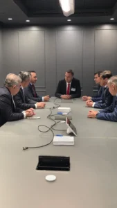 El gobernador Juan Pablo Valdés cumple en EEUU de la Tercera Jornada del Argentina Week. En sus redes, publicó «en el @BankofAmerica, nos reunimos gobernadores, CEOs y equipos técnicos de inversionistas globales. Intercambiamos estrategias implementadas en tecnología, producción y finanzas, y las posibilidades de desarrollo que tenemos en las provincias»