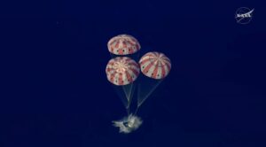 Luego, Orion abrió sus paracaídas y redujo la velocidad hasta tocar el agua en la zona prevista para la recuperación. Después del amerizaje, equipos de rescate de la Marina de Estados Unidos iniciaron las tareas para asegurar la nave y asistir a la tripulación.