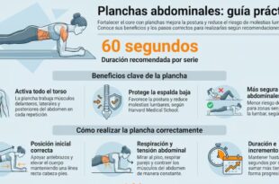 Expertos recomiendan mantenerlas determinada cantidad de segundos por serie para fortalecer el core sin lesionar la zona lumbar. Las planchas abdominales han eclipsado a los abdominales clásicos y son opción efectiva para fortalecer el torso, por activar de manera simultánea la musculatura delantera, lateral y posterior, según la Universidad de Harvard. Este ejercicio isométrico se diferencia por mantener la estabilidad central del cuerpo, fortalecer el core, favorecer una …
