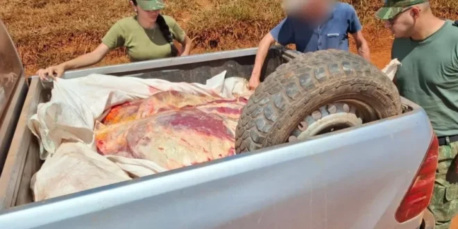 Al verificar la carga, los policías constataron la presencia de bolsas de gran tamaño que contenían productos cárnicos recientemente faenados.
