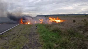 Esta mañana, por Ruta Nacional 14, a la altura del Kilómetro 509, un automovilista colisionó un carpincho, fue a la banquina y terminó calcinado