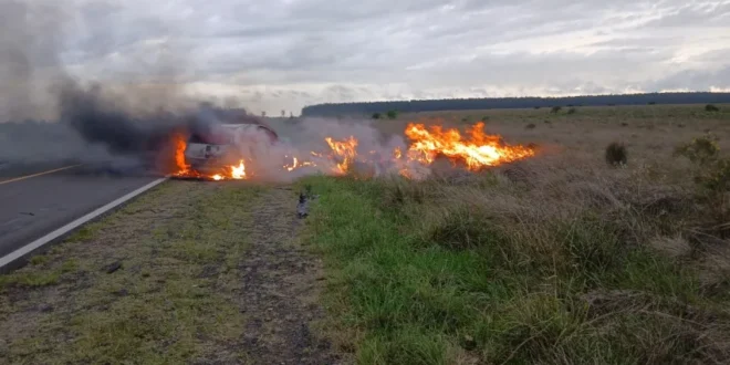 Posteriormente el rodado comenzó a incendiarse en zona de banquina, por lo que luego los uniformados trabajaron en conjunto con personal de Bomberos Voluntarios y del BRIF.