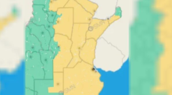 Gran parte del centro y este del país bajo advertencia del Servicio Meteorológico Nacional.