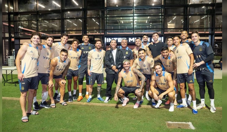 El cantante, que cuenta con más de 30 años de trayectoria en el género tropical, se acercó al predio en el que entrena el seleccionado en Miami y, aunque no fue parte del partido, conversó con los jugadores y el presidente del fútbol argentino.