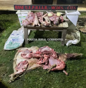 El procedimiento fue realizado alrededor de las 18:30 horas, cuando los efectivos interceptan a una camioneta – marca Toyota Hilux- con tres ocupantes, todos mayores de edad- quienes en la caja del rodado, transportaban diferentes cortes de carne ovina y porcina, entre otras cosas, los cuales no cumplían con las medidas sanitarias correspondientes para su trasladado, siendo secuestrado bajo las formalidades legales y los hombres aprehendidos.
