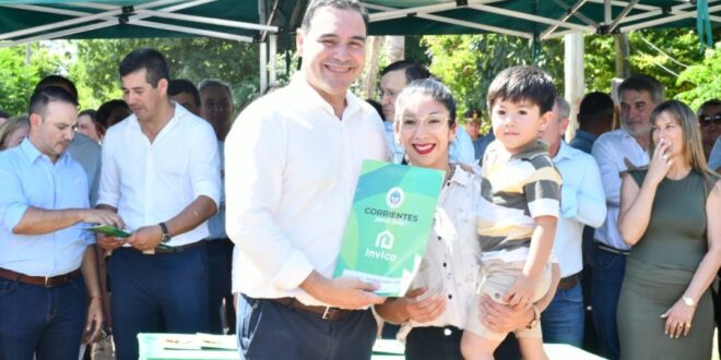 Durante la entrega de viviendas del Programa Oñondivé en el barrio “Bomberos Voluntarios” de Tatacuá, el gobernador Gustavo Valdés remarcó la importancia de sostener políticas habitacionales con recursos provinciales y una visión social. En ese sentido, señaló que las casas construidas “pueden estar más de 45 millones de pesos, más los muebles”, y advirtió que en muchos casos los programas nacionales no logran adaptarse a la realidad de las familias: “Muchas veces diseñan políticas públicas pensando en bajar al mercado, y es el mercado el que tiene que calificar a una entidad bancaria acorde al ingreso de recursos”, afirmó.
