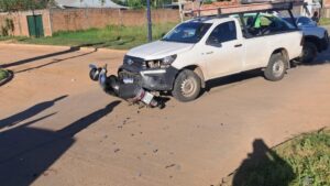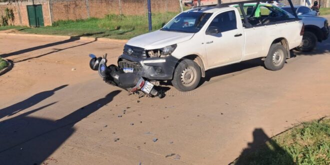 Un siniestro vial que se produjo en la mañana del martes en la esquina de las calles Río de Janeiro y Yugoslavia de la Capital de Corrientes. una camioneta iba por la primera de las vías de oeste a este y tenía prioridad de paso, mientras que la moto circulaba de norte a sur.