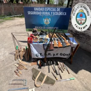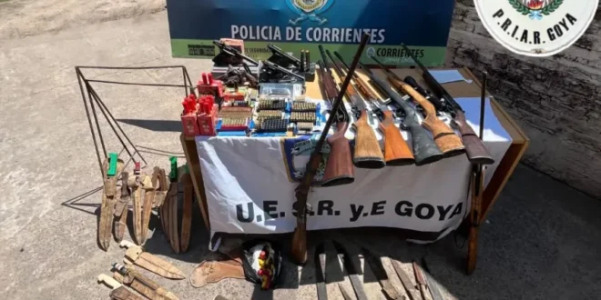 Mediante una orden de allanamiento, gestionadas por el fiscal rural, los efectivos policiales pertenecientes a la Unidad Especial Policía Rural e Islas secuestraron diversas armas de fuego cuchillos, machetes y municiones sin percutar. Todo éste arsenal fue encontrado en dos viviendas ubicadas en el paraje Rincón del Pago en el departamento de Goya. Continúa la investigación ordenada por la justicia local.