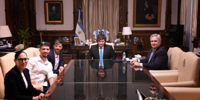 El presidente Javier Milei recibió este mediodía en Casa Rosada a dos de los argentinos secuestrados por el grupo Hamas en Israel el 7 de octubre de 2023.