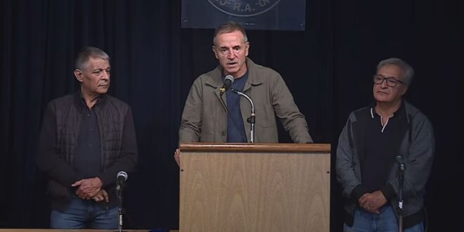 El endeudamiento familiar ha aumentado, hay pérdida constante de trabajadores y crecimiento del desempleo”, comenzó su discurso el representante del sector de Seguros. Lo escoltaron sus compañeros Cristian Jerónimo, del sindicato del Vidrio, y Octavio Argüello, de Camioneros.