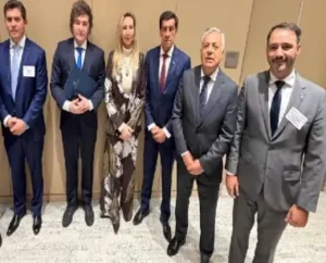 El presidente Javier Milei y la secretaria General de la Presidencia, Karina Milei, se mostraron junto a los gobernadores dialoguistas que los acompañaron en la «Argentina Week» en Nueva York. Se trata de los gobernadores Gustavo Sáenz (Salta), Marcelo Orrego (San Juan), Carlos Sadir (Jujuy), Alfredo Cornejo (Mendoza) y Juan Pablo Valdés (Corrientes)