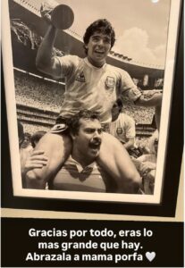 “Diego me decía que no lo saque los botines porque eran para Doña Tota, yo se los pedí y él me dijo “no, los botines son para mi mamá”. Por supuesto que no se los toqué. Lo tuve en andas, no sé cuánto duró, no puedo calcular porque en ese momento no me di cuenta de lo que hice. Hoy no lo puedo creer, pero en ese momento, entre el calor y correr y tenerlo a Diego, no sé si fueron segundos o minutos», agregó Roberto.