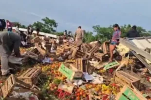 Un gran camión cargado de verduras, volcó en la Ruta Nacional 12 en cercanías de la localidad de Esquina, y los pobladores de la zona, se llevaron la carga que estaba esparcida en …