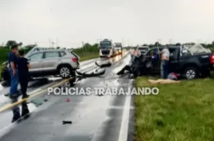Un violento choque frontal entre dos camionetas —una Toyota y una Volkswagen— ocurrió esta mañana sobre la Ruta Nacional Nº 12, entre los km 1123 y 1124, cerca del acceso a Escorza …