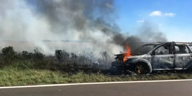 Una mañana de tensión se vivió este jueves sobre la Ruta Nacional 14, a raíz del incendio de una camioneta tipo SUV que circulaba en cercanías del Paraje «Cuay Grande», aproximadamente a 20 kilómetros al sur de la ciudad de Santo Tomé. Pese a la magnitud de las llamas, no se registraron heridos.