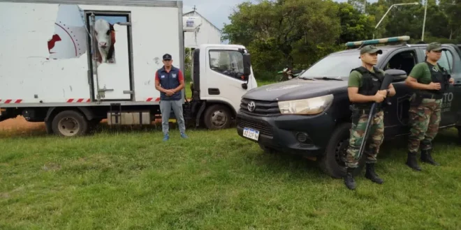 En la jornada de ayer, en trabajo conjunto y coordinado, siguiendo la línea investigativa, efectivos policiales de la Comisaría de distrito La Cruz, Unidad especial de seguridad rural y ecológica de la Cruz, División GTO, y División Investigaciones de la Unidad regional N°IV Paso de los Libres, en colaboración con la unidad fiscal interviniente, tras diligenciar dos órdenes de allanamientos, secuestraron un camión con el que presuntamente trasladaban carne clandestina.