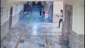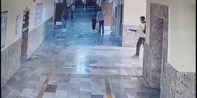 Imágenes de las cámaras de seguridad del interior del establecimiento ilustran el caos que se desató en cuestión de segundos. El video muestra a estudiantes y personal corriendo hacia las aulas y cerrando las puertas con urgencia antes de que el atacante ingresara al pasillo. En las grabaciones se lo ve detenerse brevemente, bajar la vista hacia la escopeta que lleva en las manos y luego avanzar en dirección a las personas levantando el arma.