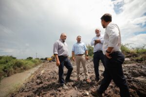 Durante la jornada, las autoridades supervisaron los trabajos que se desarrollan para facilitar el escurrimiento del agua y reducir el impacto de las lluvias intensas registradas en los últimos días. La presencia de ambos mandatarios permitió evaluar la situación en el lugar y coordinar acciones inmediatas frente a los inconvenientes generados por las inundaciones.